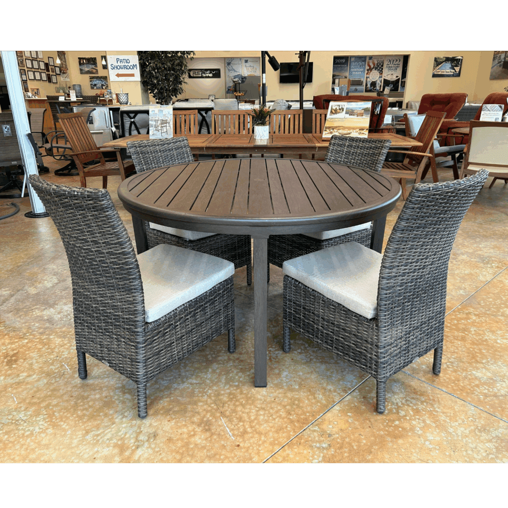 This 54″ Round Table Top is designed with a hole for an umbrella, making it the ideal centerpiece for your outdoor dining area. Finished in Hessonite Garnet, it pairs perfectly with the Coral Gables Dining Chairs for a cohesive and stylish look.