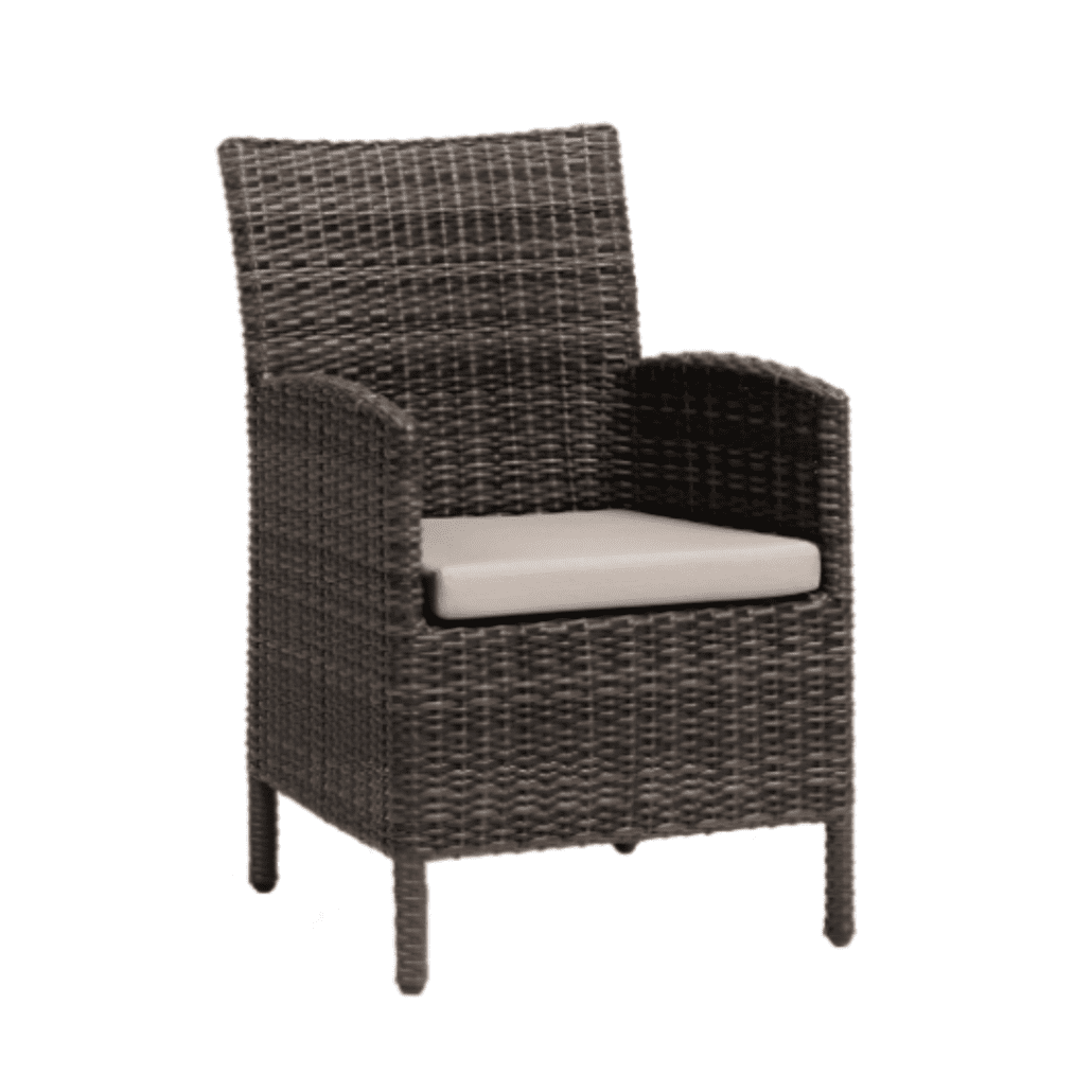 The Coral Gables Dining Chair offers a comfortable, stylish seating option for your outdoor dining set. Upholstered with Sunbrella Cast Ash fabric, this chair is both weather-resistant and designed to complement the overall aesthetic of the Coral Gables Collection.